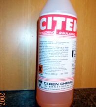Som de flesta vet, så har vi väldigt mjukt och kalkfattigt vatten på Höjdalt. Däremot är halterna av järn och mangan mera framträdande, vilket kan visa sig som en brun beläggning. Motmedlet är dock detsamma som för kalk - en svag syra. De vanliga ”husmorsknepen” brukar bestå av citronsyra eller ättika. Det finns också ”proffsigare” preparat. Bl.a. Beckers på Ängelholmsvägen i Helsingborg säljer CITEK (se bilden, nej jag har inte provision!) som är baserat på fosforsyra, vilket är mycket effektivt utan att ha ättikssyrans skarpa lukt.